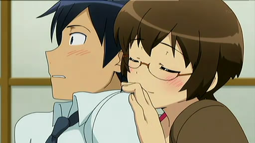 At school, Manami invites Kyosuke over to her house to try out some sweets made by her family’s shop for a Halloween event. One of Kyosuke’s friends points out that he and Manami are pretty close, but Kyosuke denies there is anything romantic; however, he admits he would not allow any guy to go out with her. Later at Manami’s house, Kyosuke tries out the sweets made by Manami and ends up helping her family prepare for the event; he agrees to spend the night. Manami’s grandpa tricks them into sharing the same room that night, which prompts them to talk. Kyosuke reveals to Manami that if he was confessed to, he would reject the confession in order to maintain his peaceful lifestyle. Meanwhile, back at the Kosaka house, Kirino is noticeably frustrated that Kyosuke is staying over at Manami’s house.
